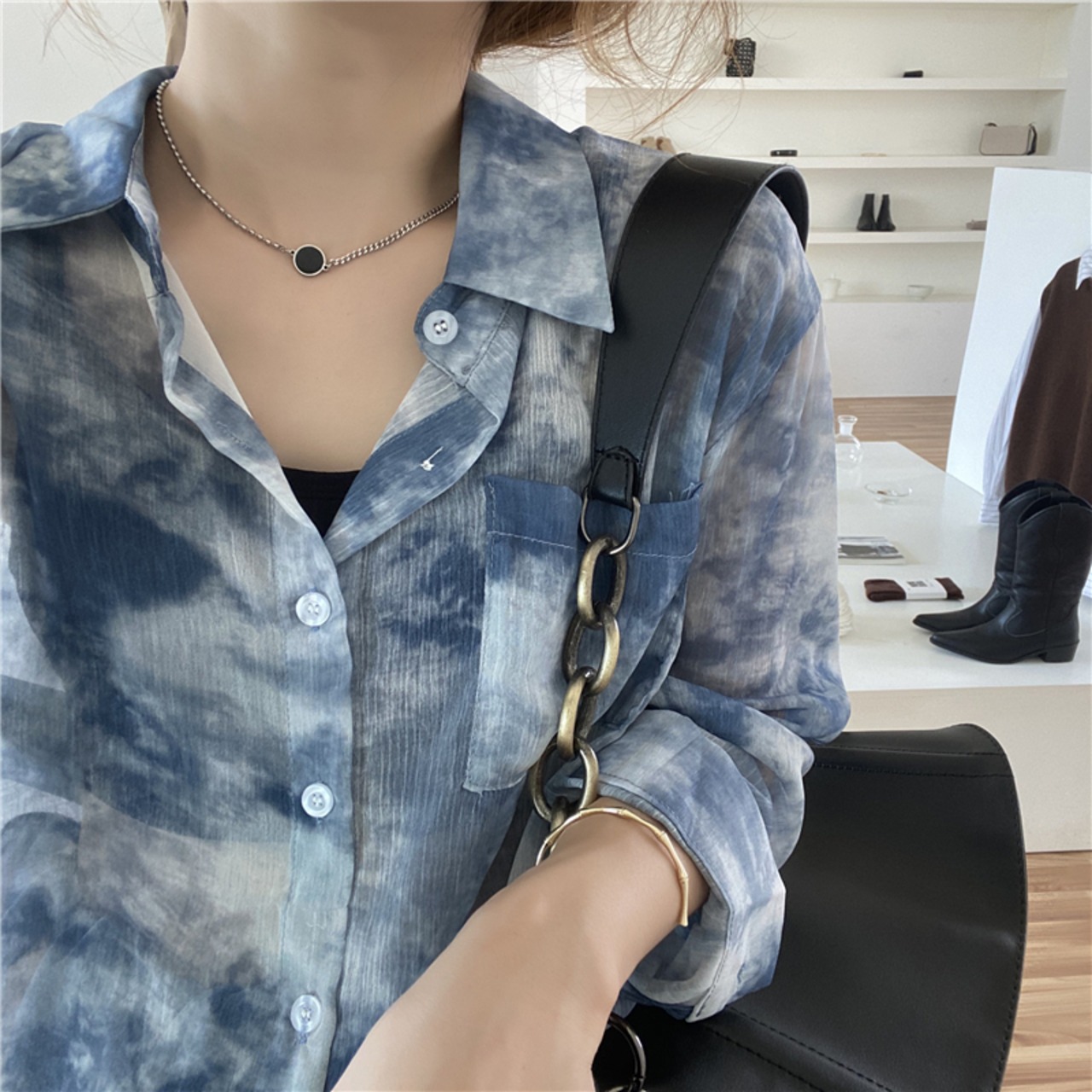 シアー 長袖 ブラウス レディース シャツ ブルー タイダイ トップス | キャノン